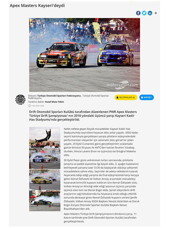 • http://kayseri.gsb.gov.tr/HaberDetaylari/1/141866/kayseride-drift-yarismasina-buyuk-ilgi.aspx